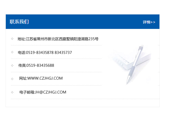 地址:常州市新北區友邦商務大廈1幢16、17層  電話:0519-85101652  傳真:0519-85112595  郵編:213022  網址:www_cz-jiayue_cn.tjfms.com  郵箱:xiajifengaa@163.com